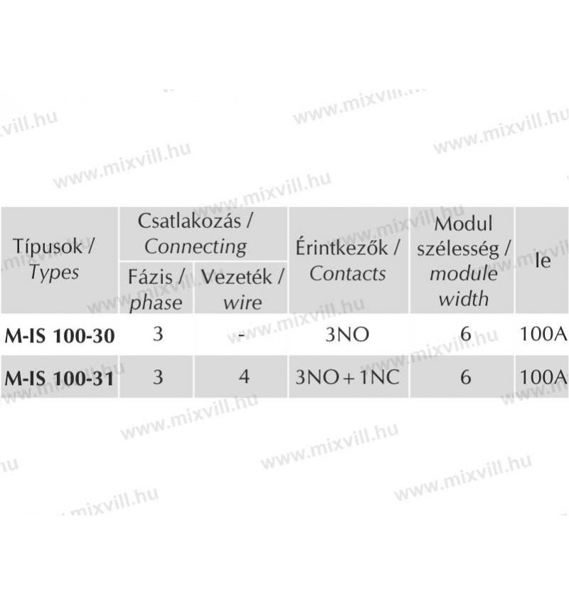 • Elektromos élettartam: ≥ 3x100.000 kapcsolás